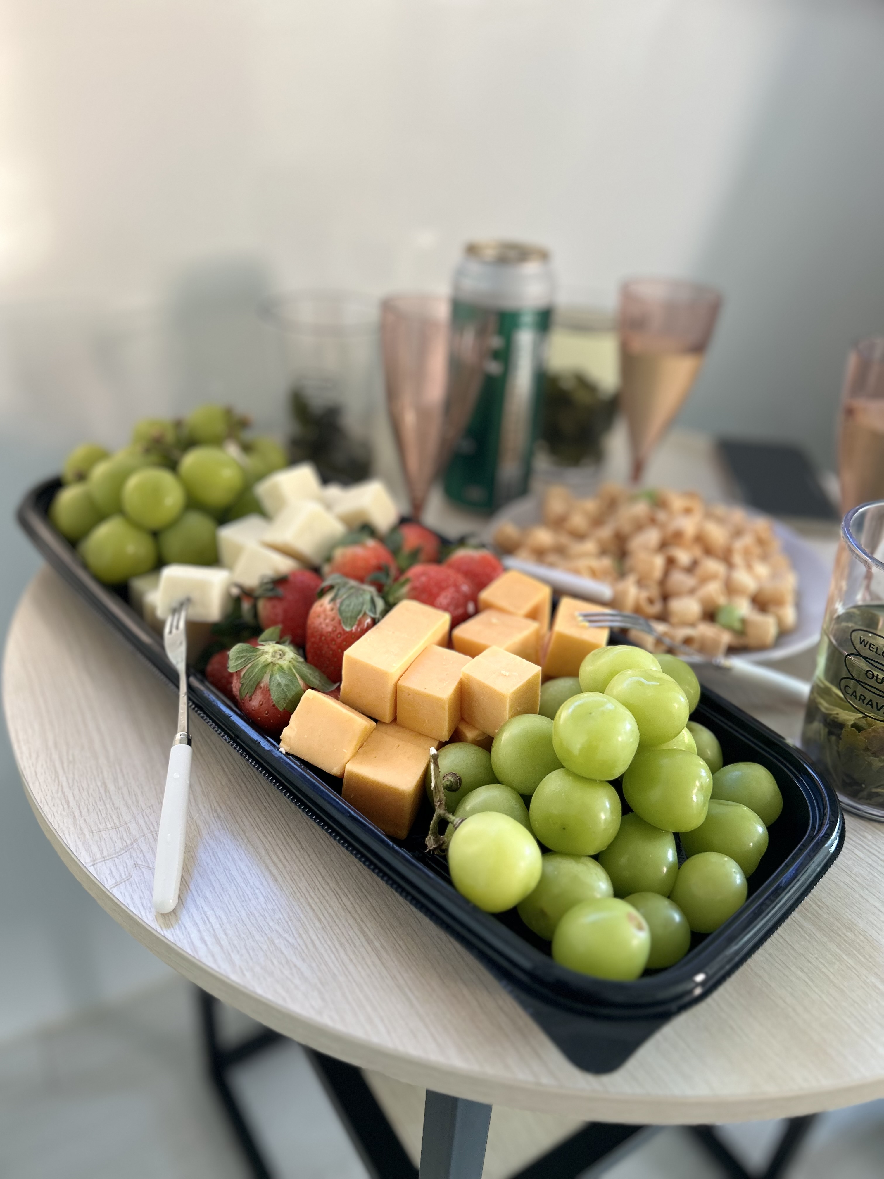 - 치즈·과일·햄 플래터는 원형 접시(또는 나무 도마)에 시계 방향 배열만 해도 고급져 보임.