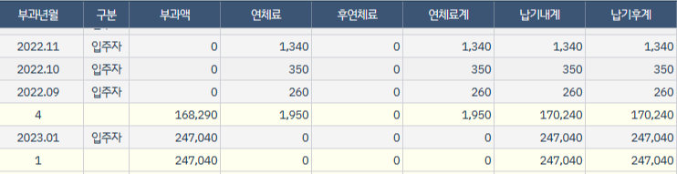 그리고 연체료는 입주자가 건건이 계산하기가 복잡하기 때문에