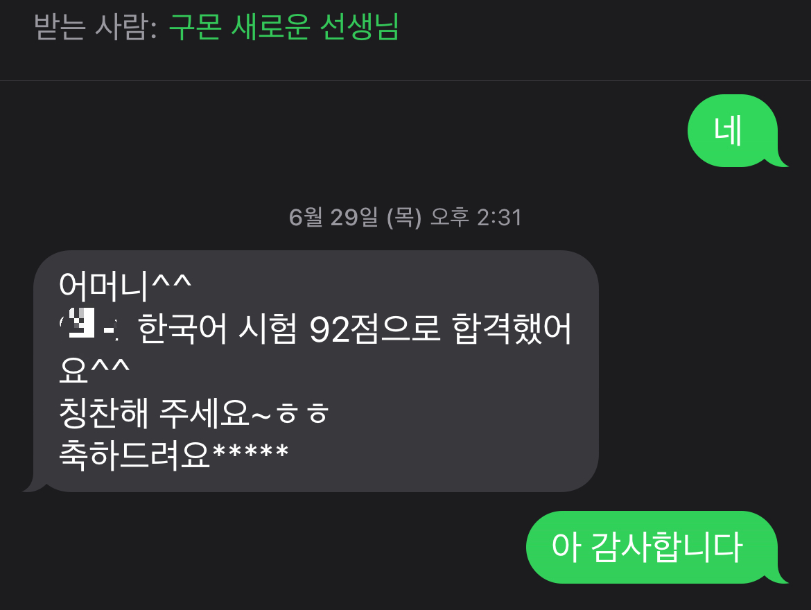 선생님이 먼저 합격 소식을 듣고 문자 보내주셨는데