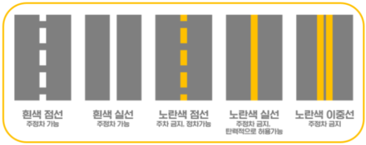 도로 위 주정차와 관련된 색깔 선 총 정리. 황색선, 하얀선 등
