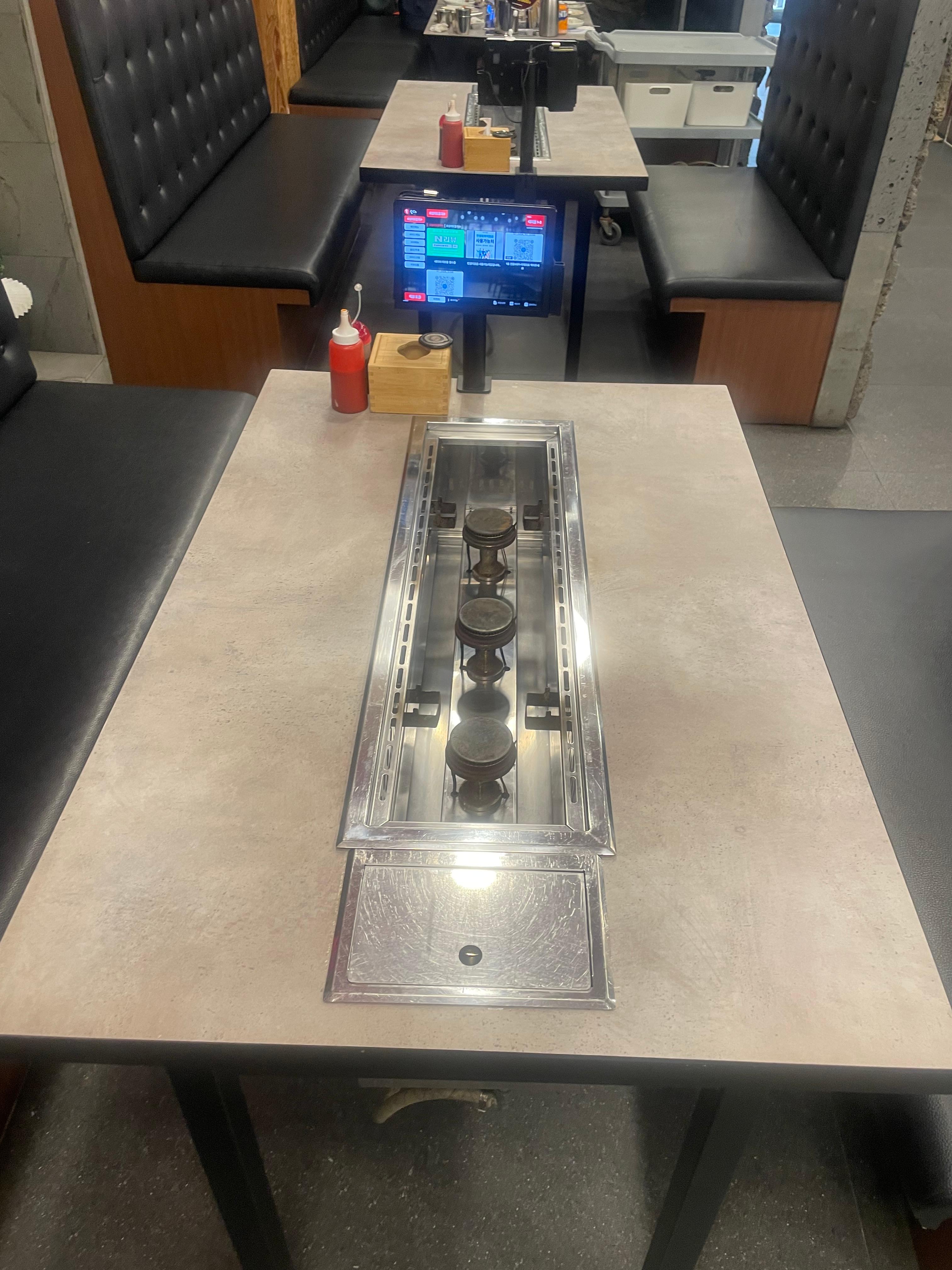 각 테이블은 불판을 기다랗게 갈치조림을 놓는 곳 처럼 만들어놨다.
