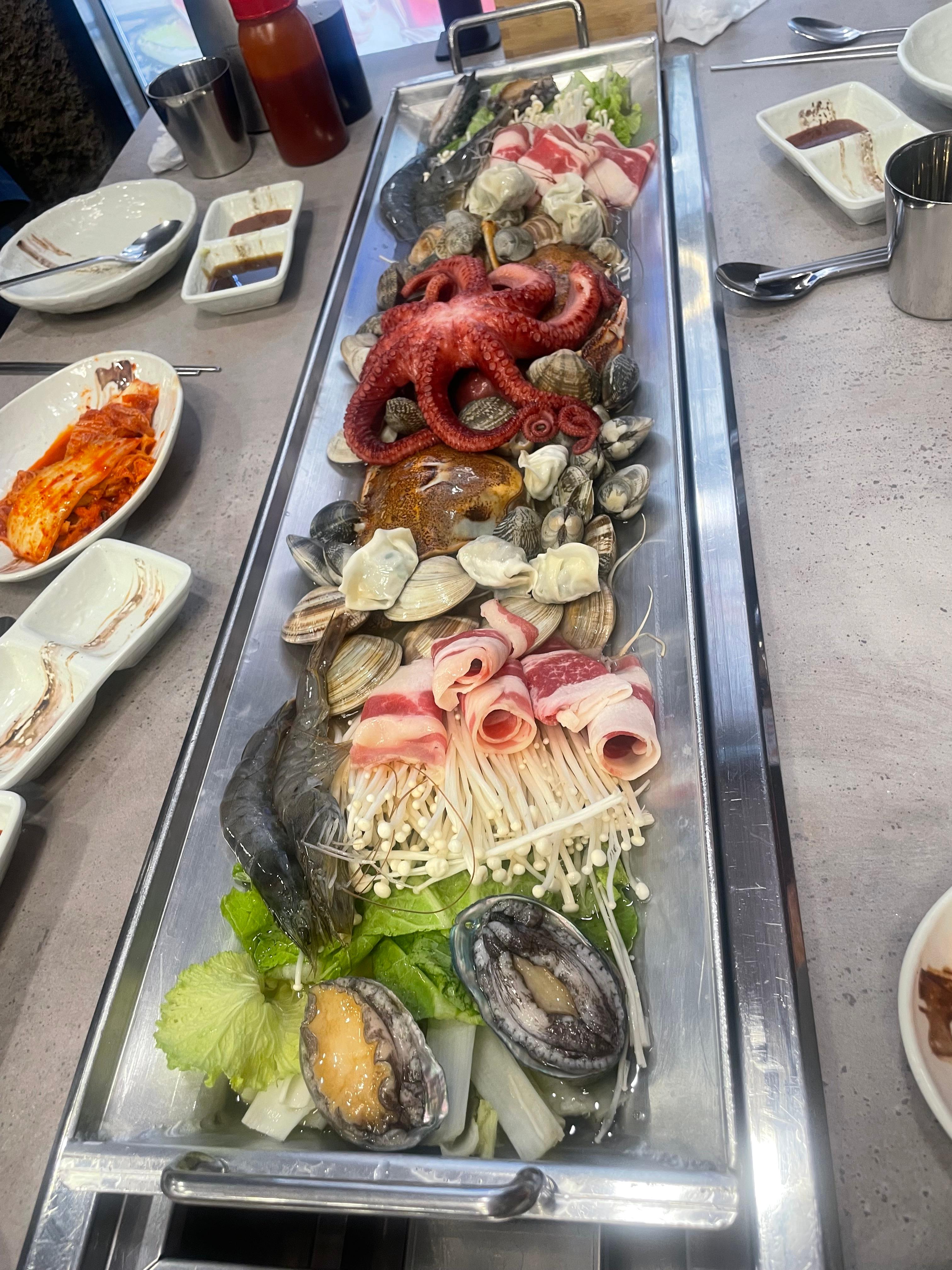 문어를 시작으로 조개, 전복, 새우, 꽃게가 가득있고
