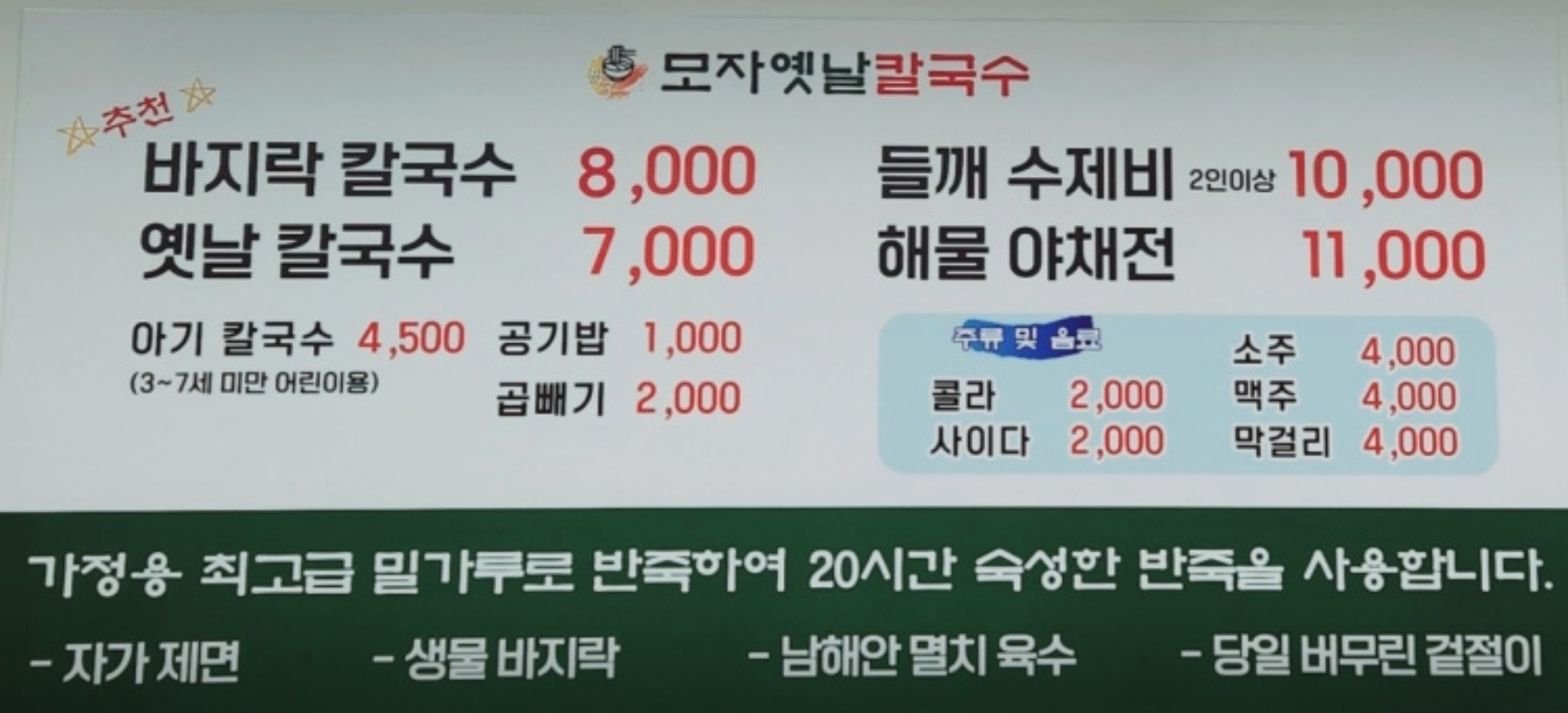 우선 모자옛날칼국수로 말하자면