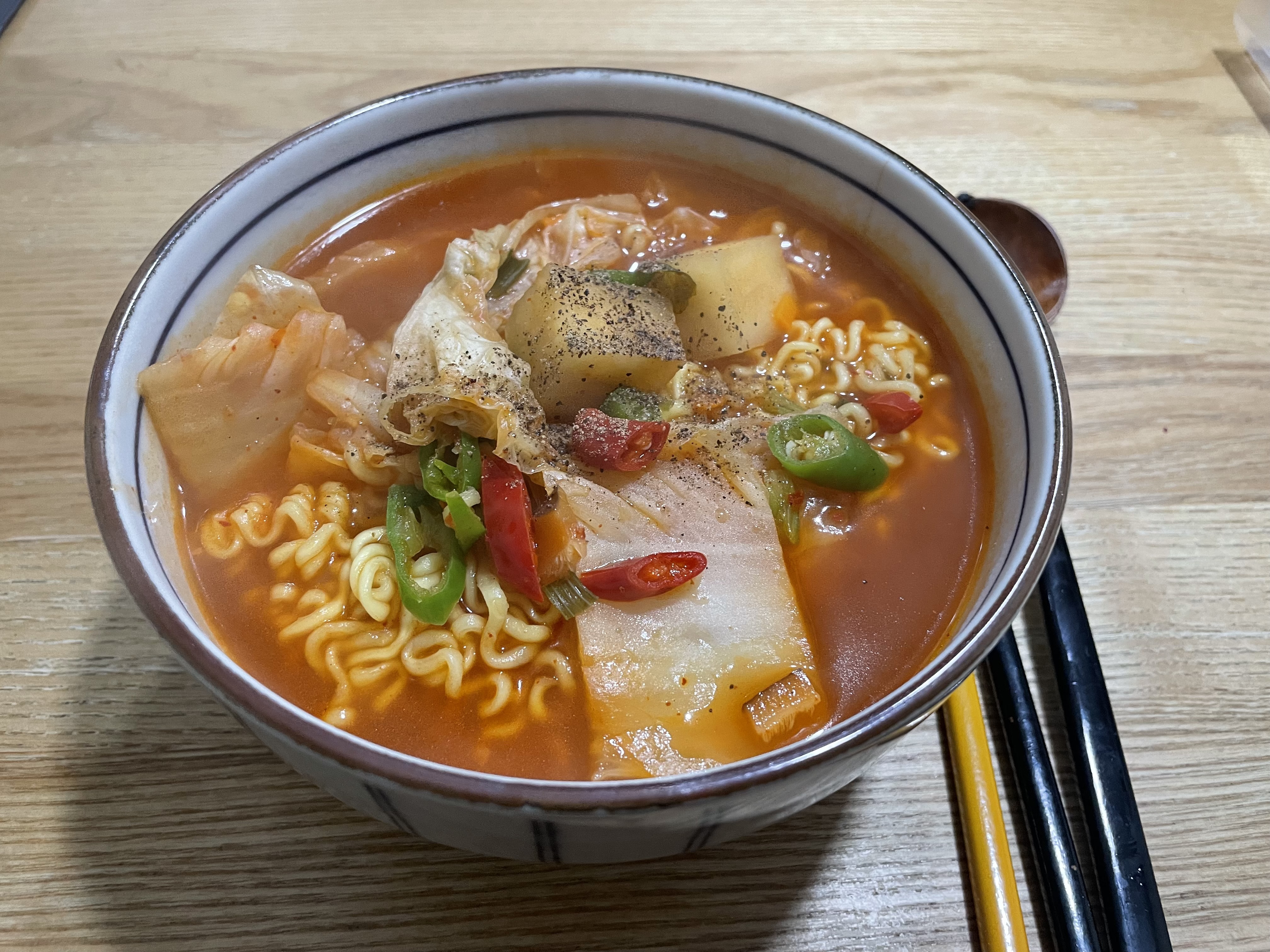 2. 라면 – 소박하지만 깊은 위로가 되는 메뉴. 계란 하나 풀고 김치 곁들이면 완성! 하지만 날 위해 해산물 잔뜩 넣고 보양라면을 끓여 먹는 것도 추천.