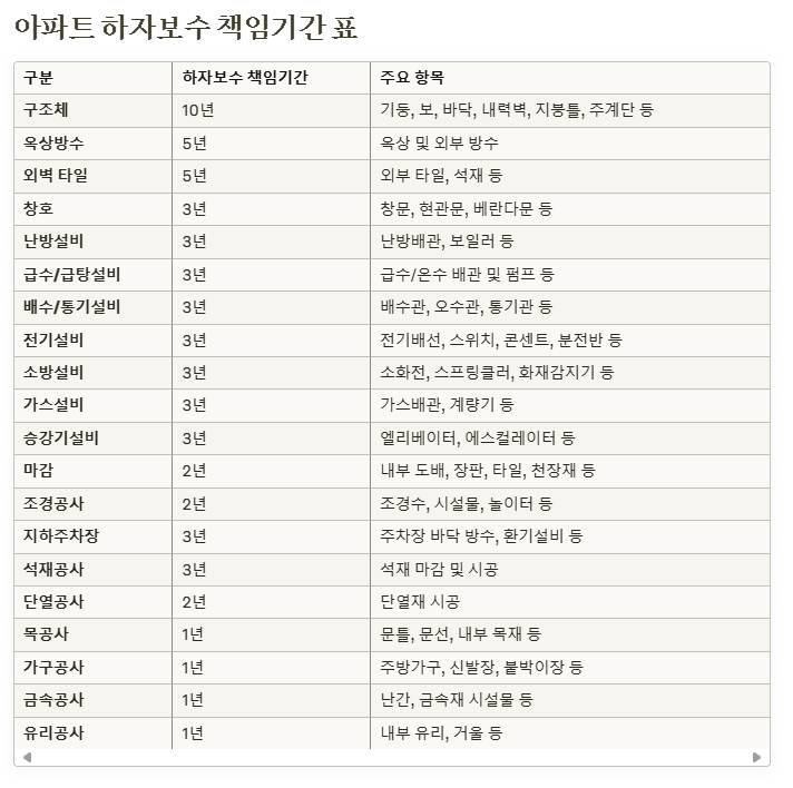 - 하자보수 기간 내에는 무상으로 진행되며, 기간이 지났더라도 중대한 하자는 보수 가능한 경우가 있다.