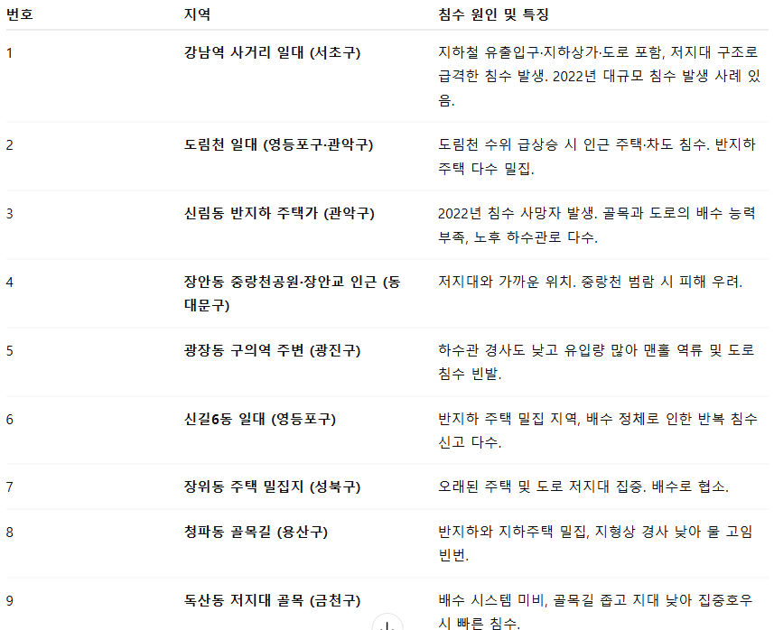📌 서울시 상습 침수 구간 10곳