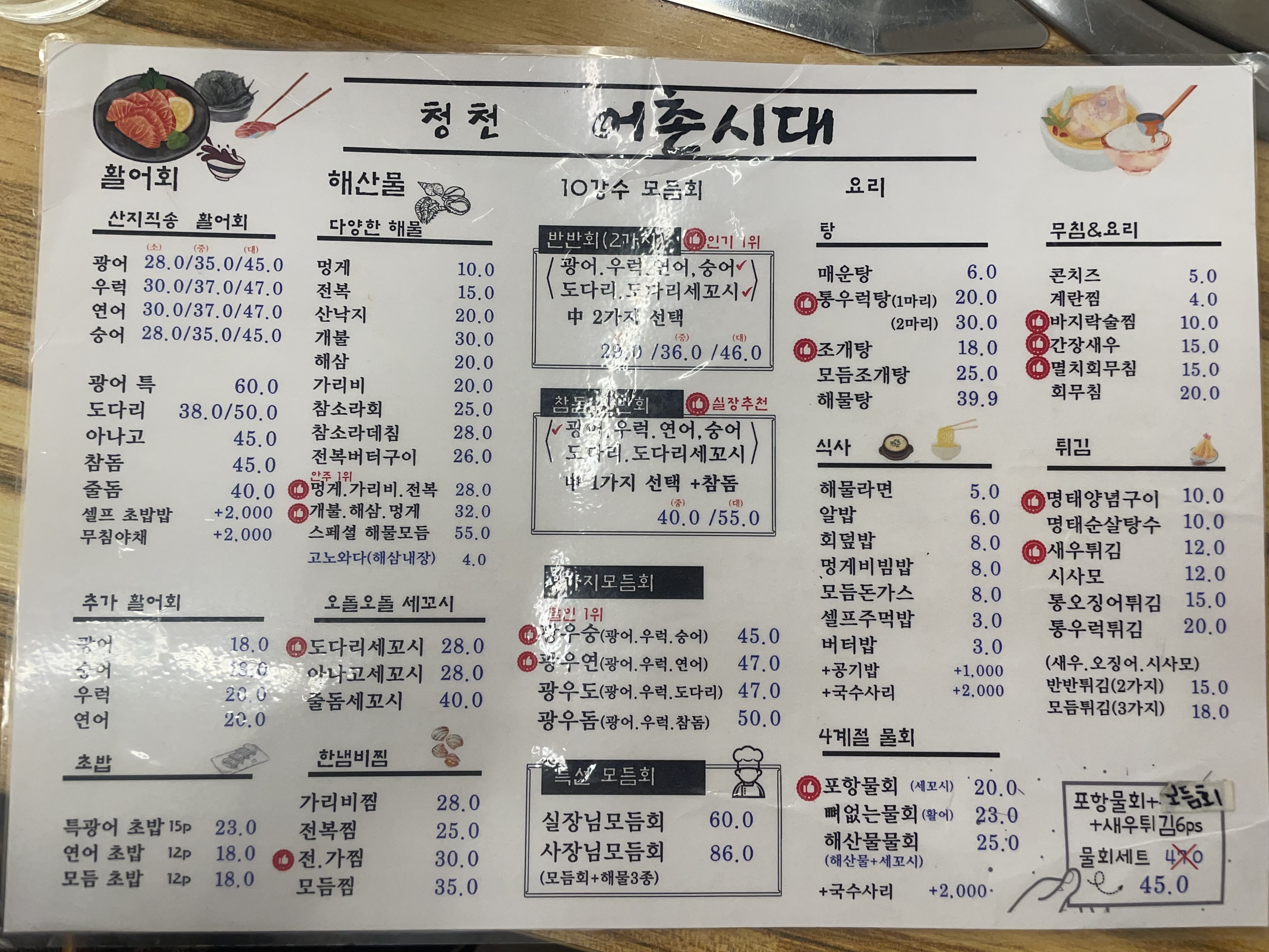 몇번 가서 먹어보니 국물요리보단 확실히 회나 무침 요리가 맛있다.
