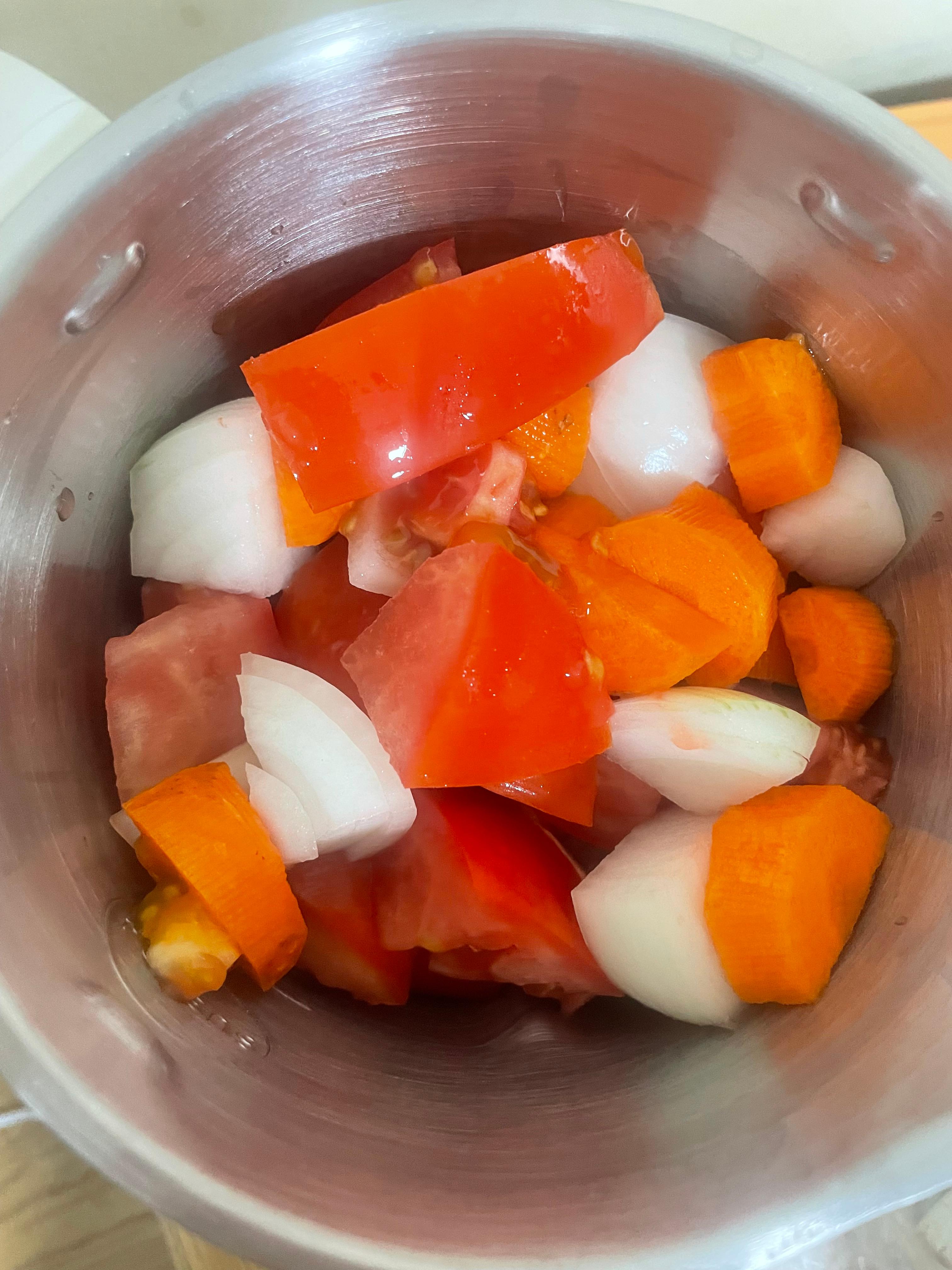 (죽 제조기 안에 가는 기능이 있어서 그냥 대충 썰어줘도 된다.)