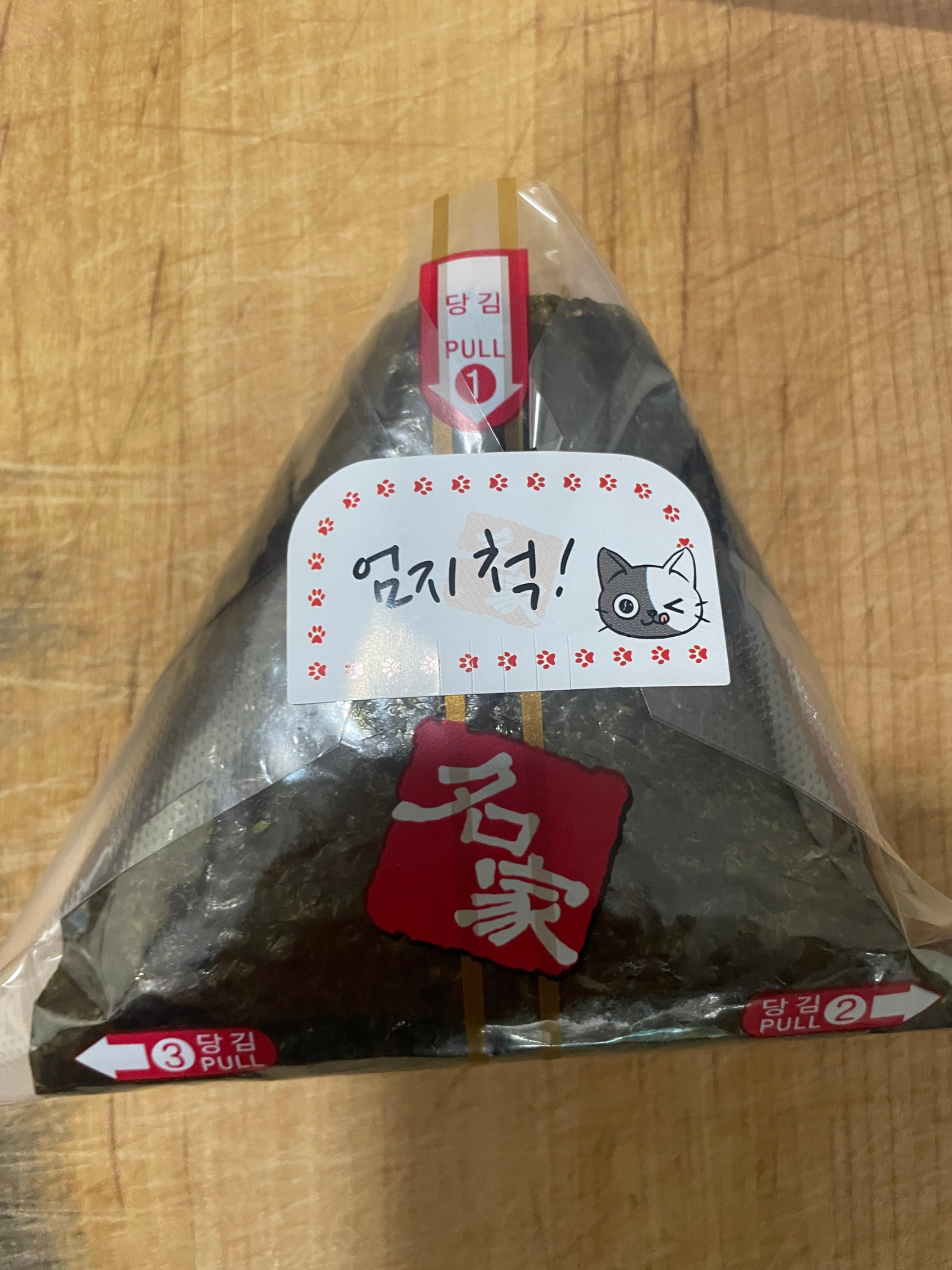 5. 이제 포장지로 이쪽 저쪽 감싸주고 스티커 붙여주면 삼각김밥 완성