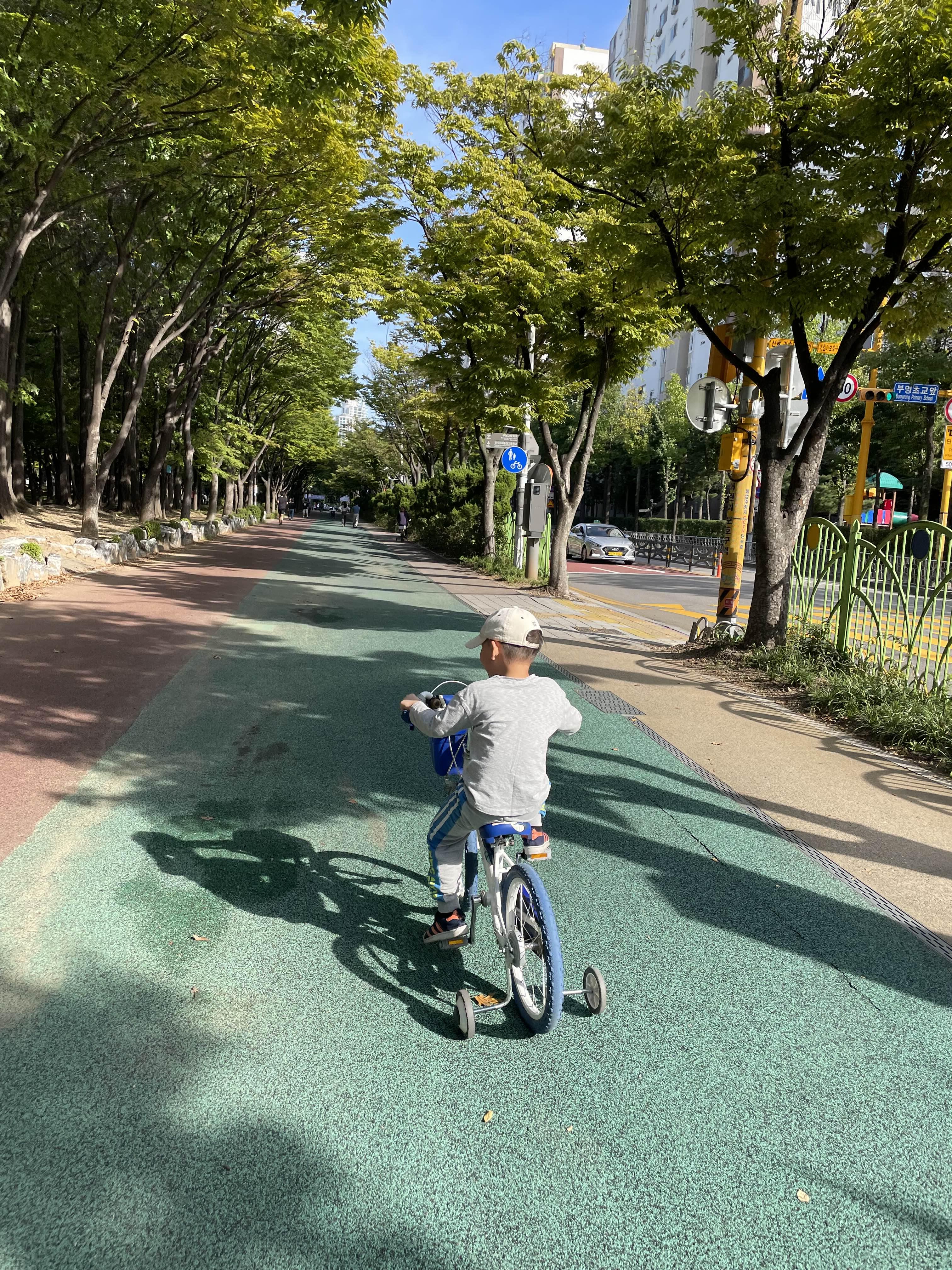 둘째는 처음 타는 거라 네발 자전거여도 탈 수 있을 까 싶었지만 너무 잘 타서 즐겁게 가을 바람을 느끼며 간만에 라이딩을 즐겼다