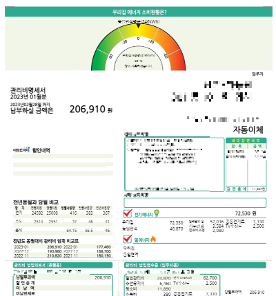 아파트 관리비 영수증을 보면 관리비 항목들이 쭉 존재한다.