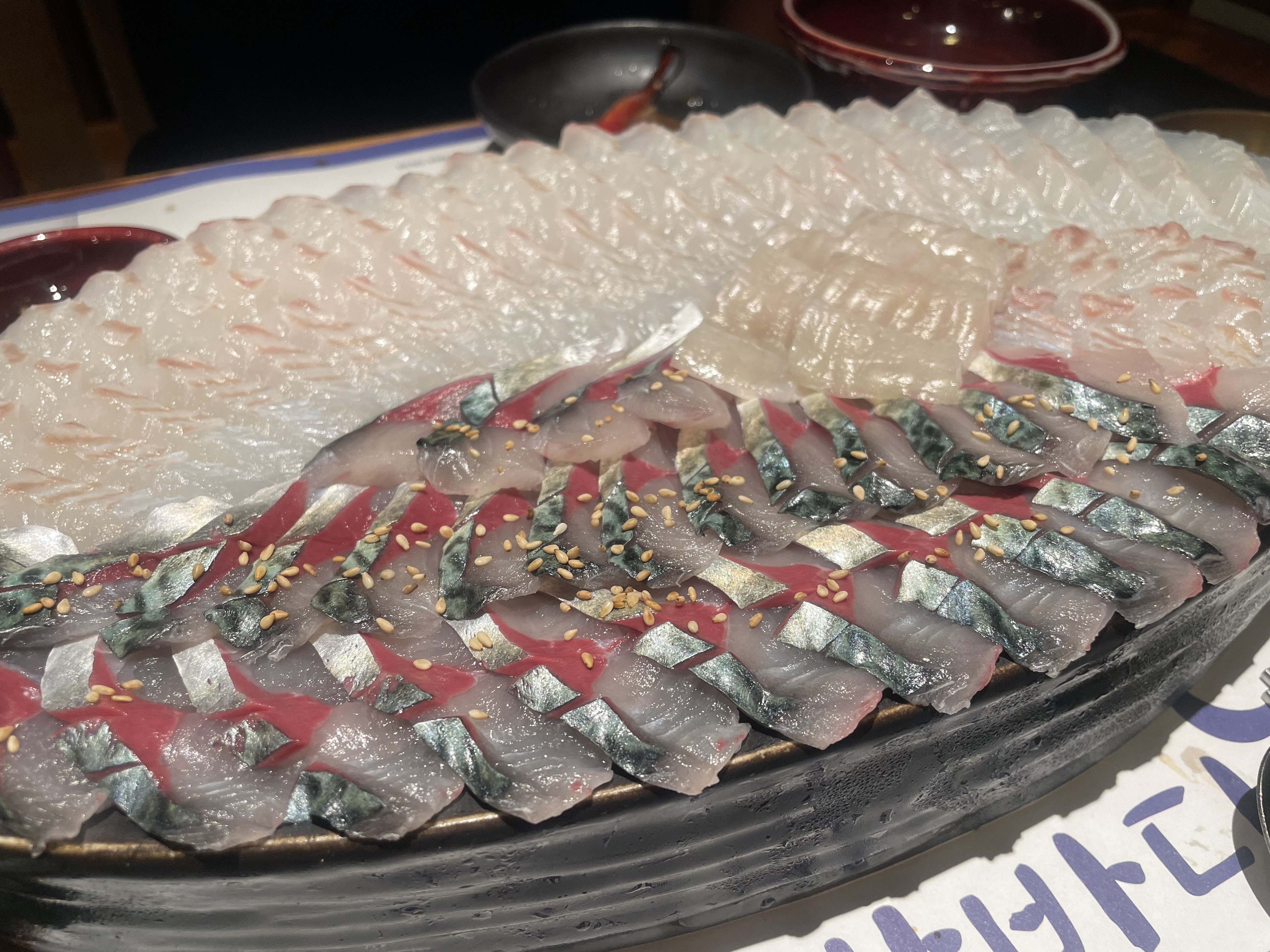 고등어회는 제주도에서 먹었던 것 보다 더 고소하고 잘 썰어진 대광어는 입안 가득 쫄깃함이 가득하다.