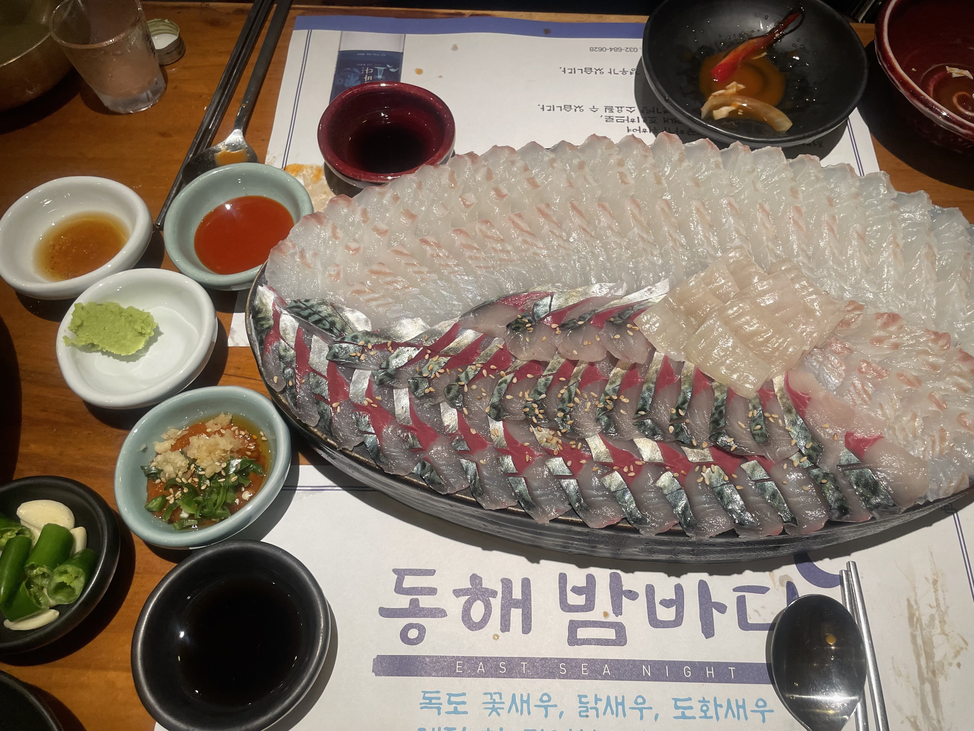고등어회와 대광어회, 그리고 해초 샐러드 세트를 시켰다.