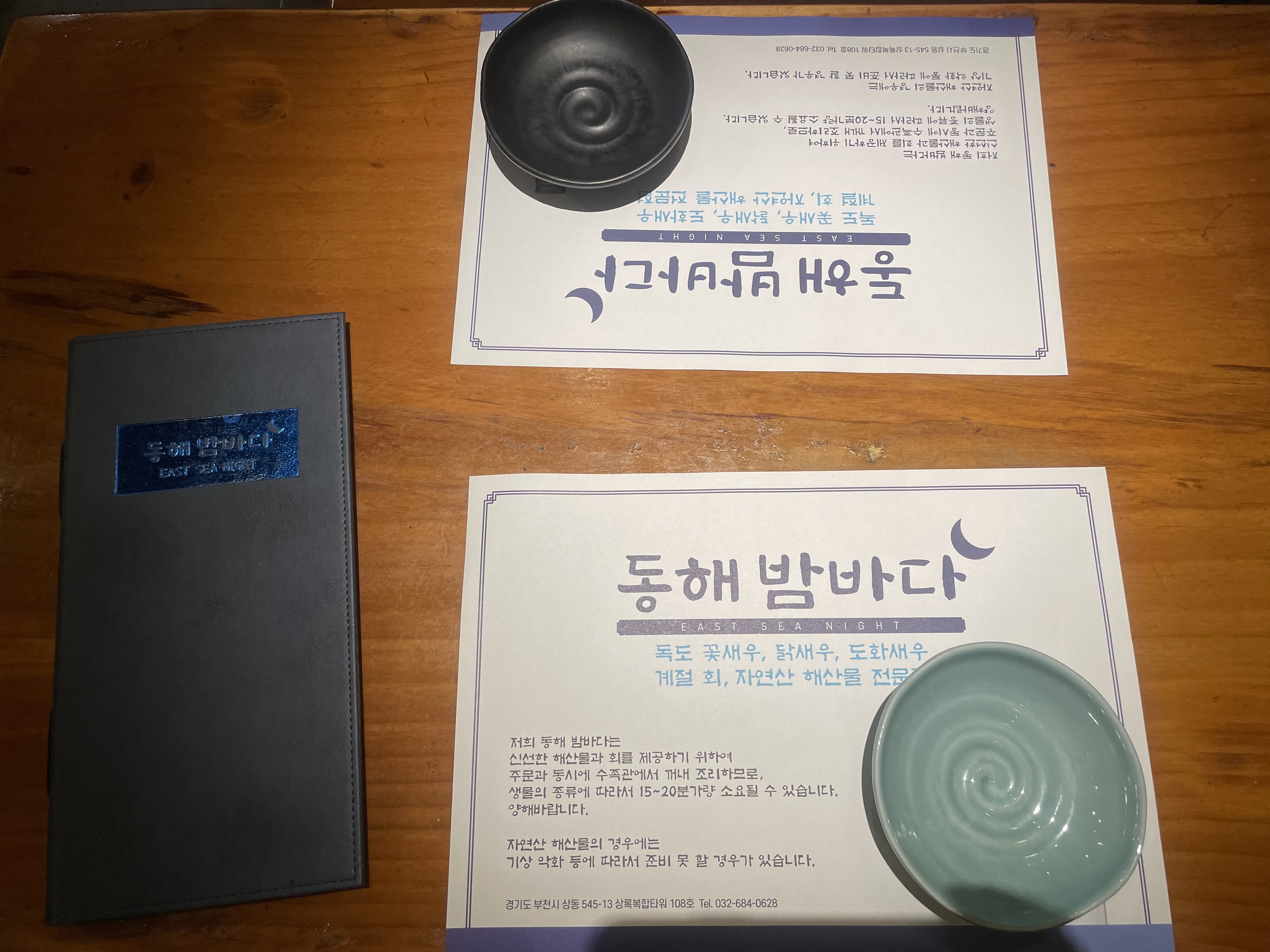 정갈해 보이는 식기와 메뉴판