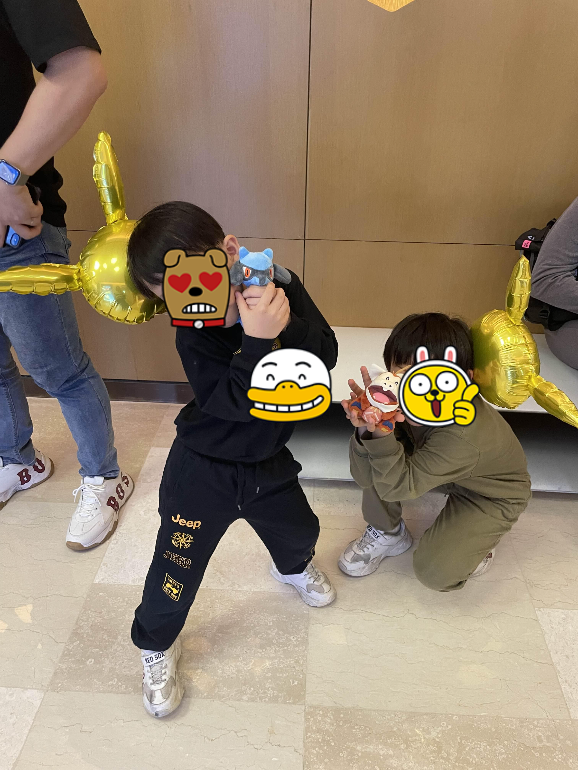 멀리서 봐서 난 뭔지도 모르고 있었는데 애들이 인형 하나씩을 손에 들고 나온다.
