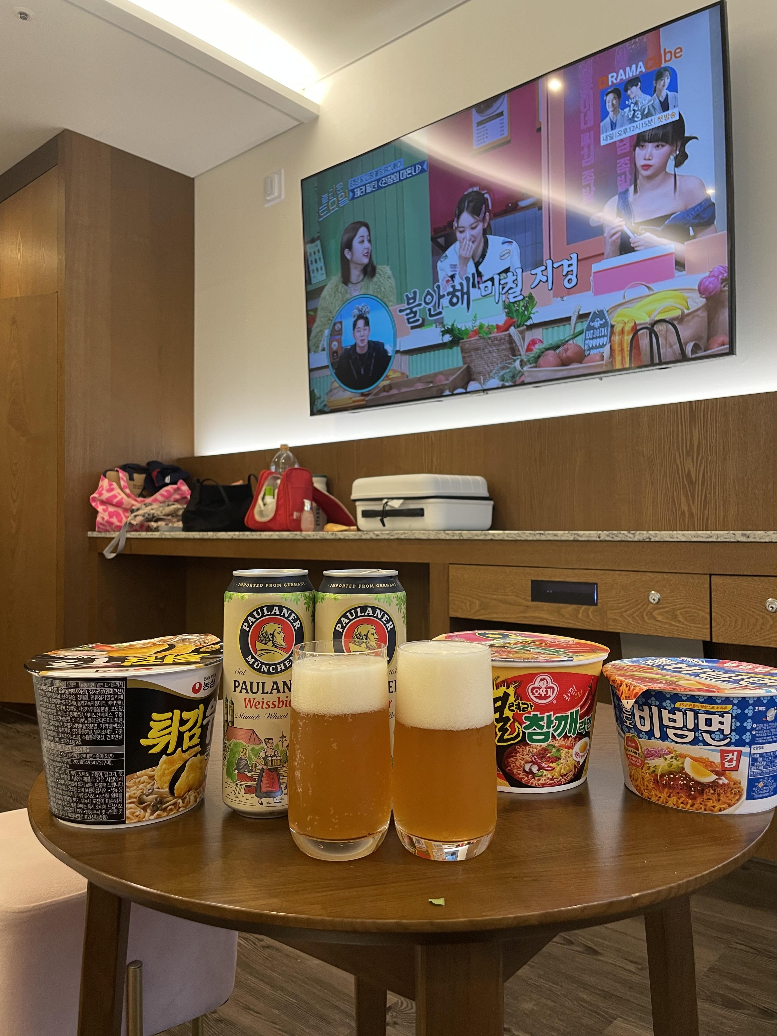 그리고 각자 좋아하는 라면 하나씩 챙기고 어른들에게 절실한 맥주 한캔씩
