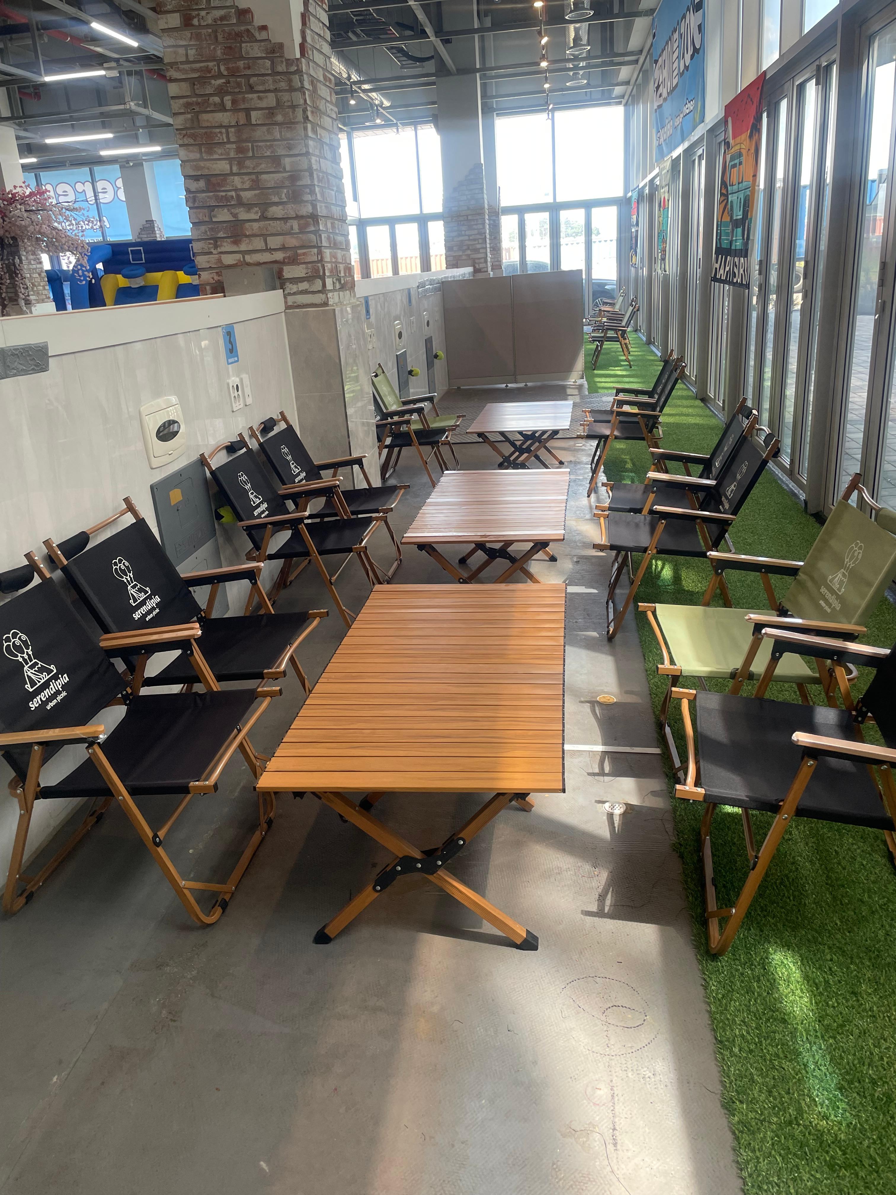 너무 깔끔하게 캥핑테이블과 의자가 셋팅 되어 있어 더욱 캠핑 온 듯한 느낌이 드는 이 공간은