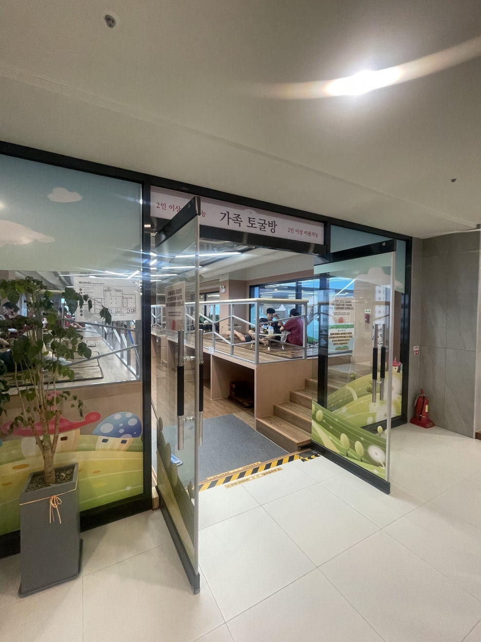 가족끼리 들어가서 TV를 볼 수도 있고, 간식도 먹을 수 있는 공간이 나눠져 있어 편리하게 이용이 가능하다.