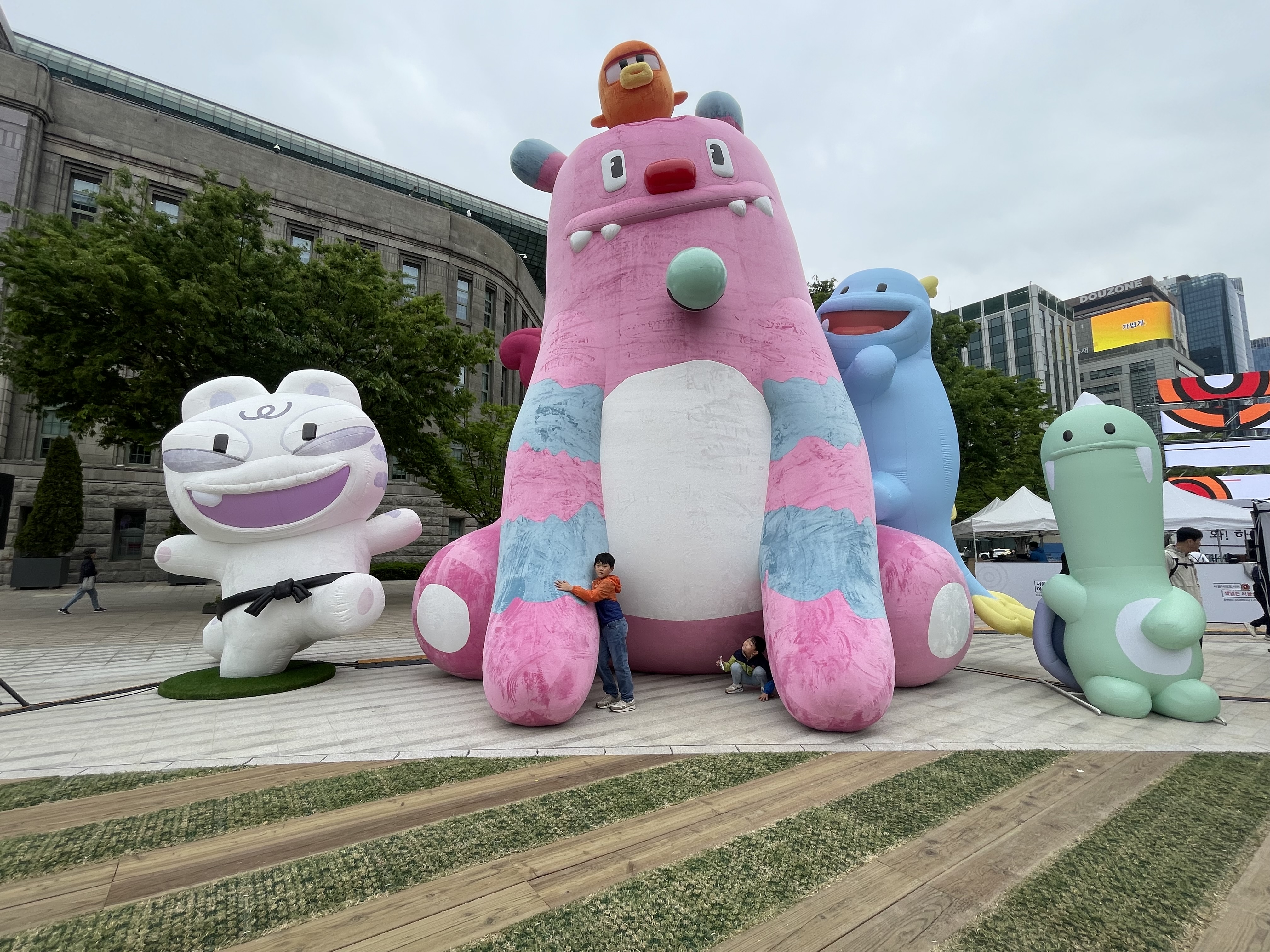 어린이날이라고 서울 마스코트인 해치 관련 자이언트 인형과 놀이 제품들도 갖다 놓고
