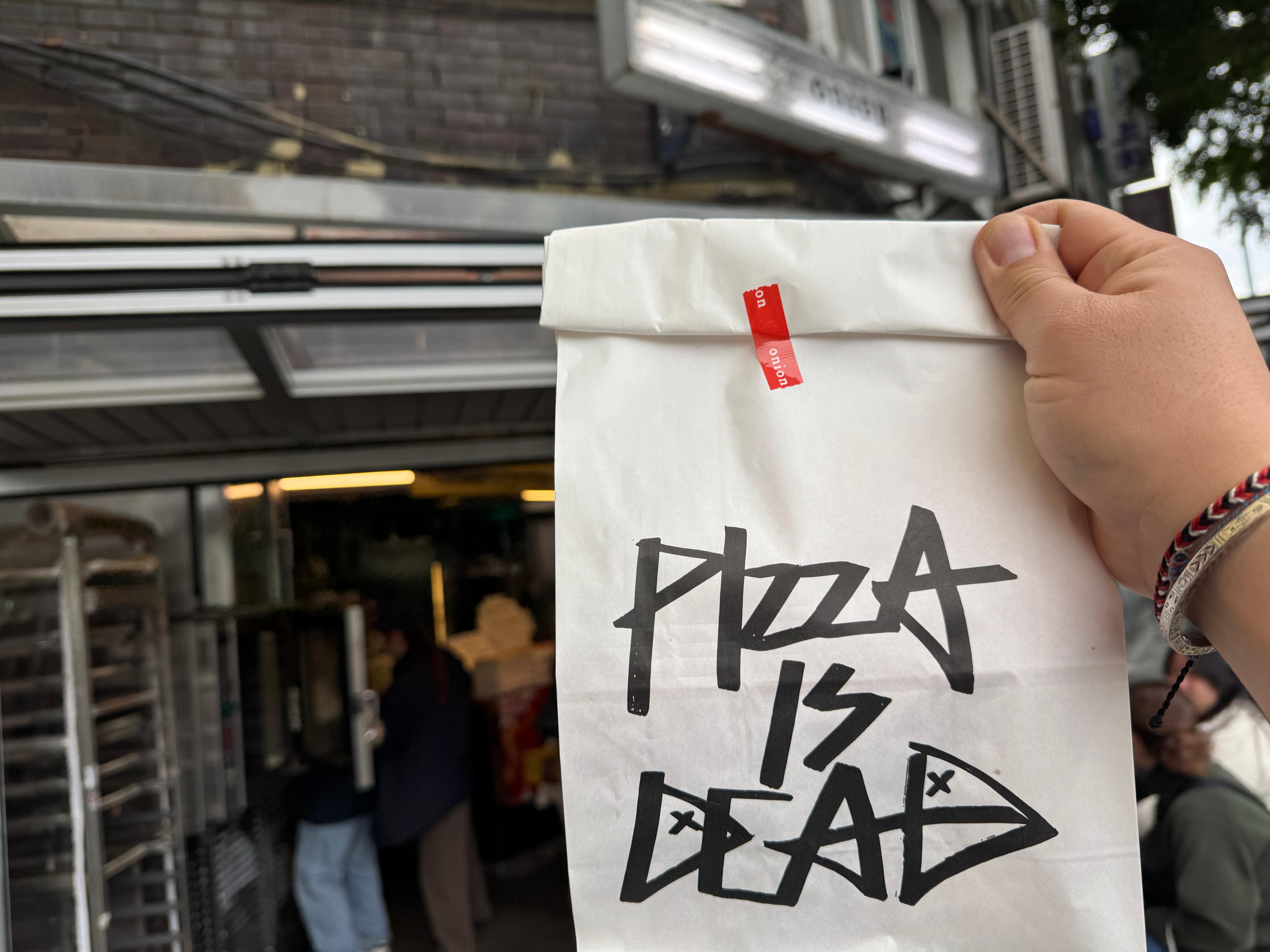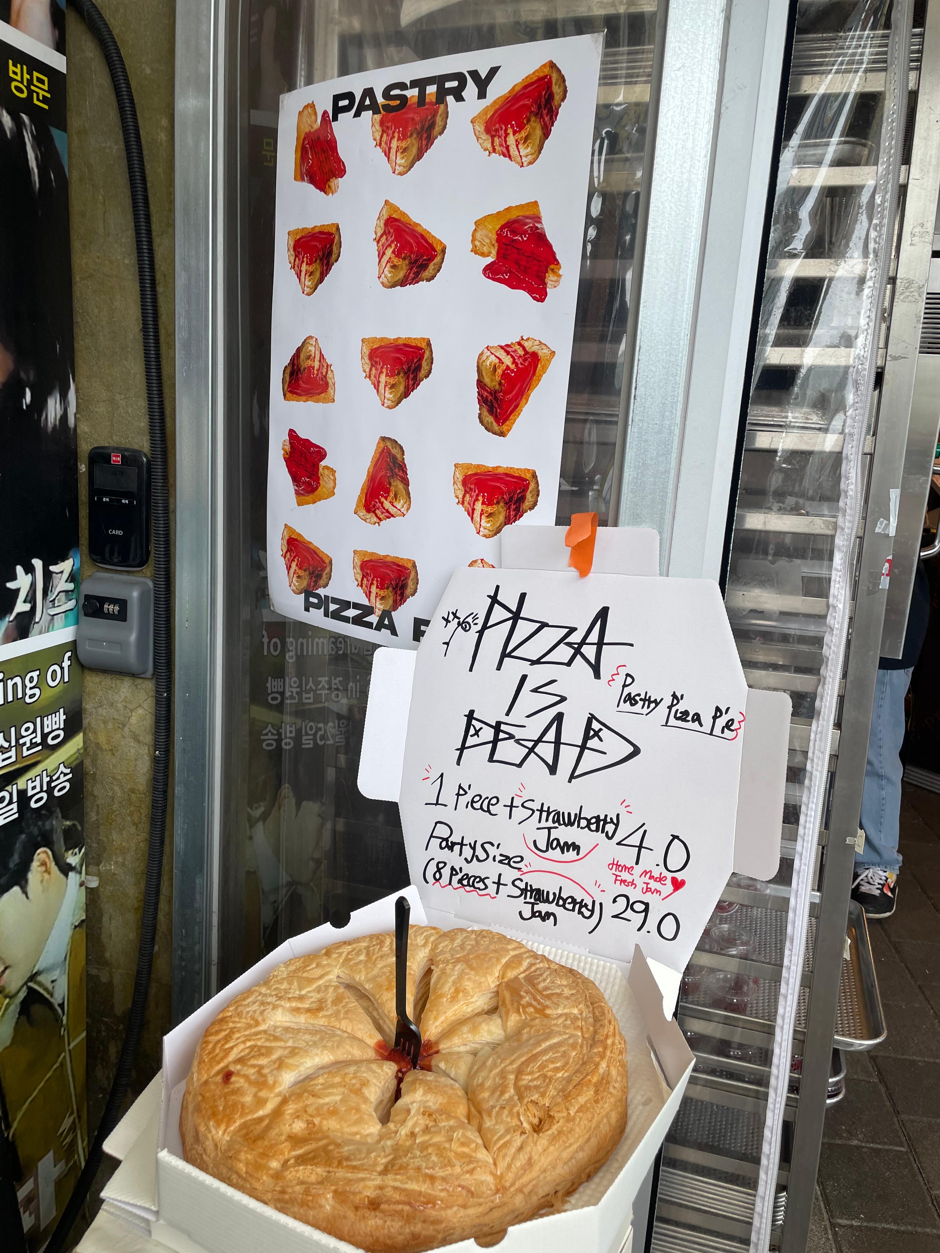 Pizza is dead라며 피자모양의 패스트리 빵을 딸기잼과 같이 파는 곳인데
