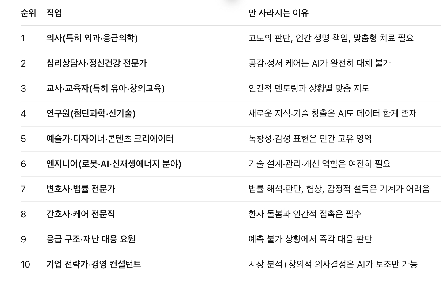 🌟 미래에도 사라지지 않을 직업 Top 10