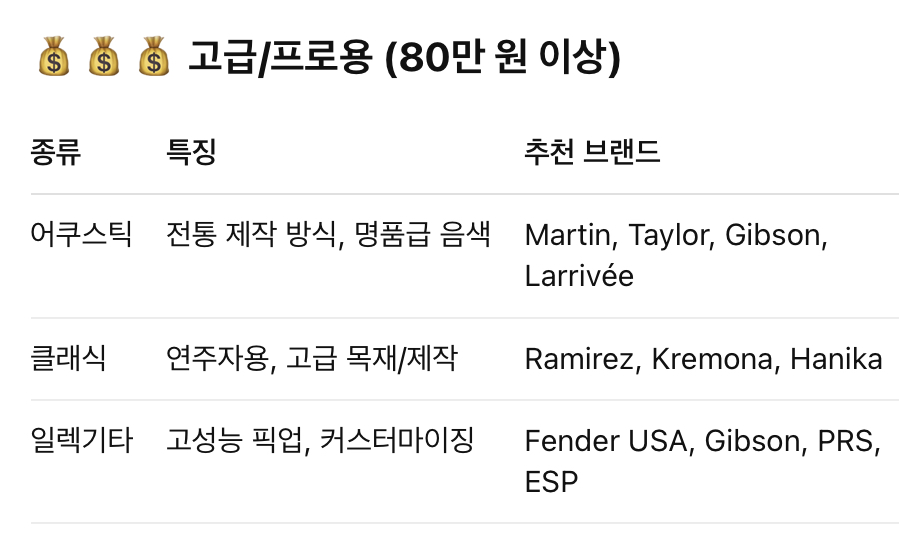 💰 2. 가격대별 기타 종류