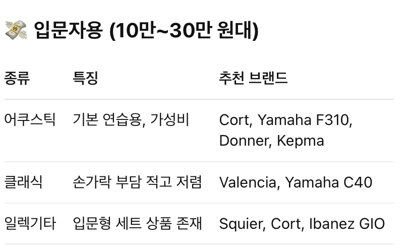 초보자라면? 어쿠스틱 or 클래식 기타(20~30만 원대)로 시작