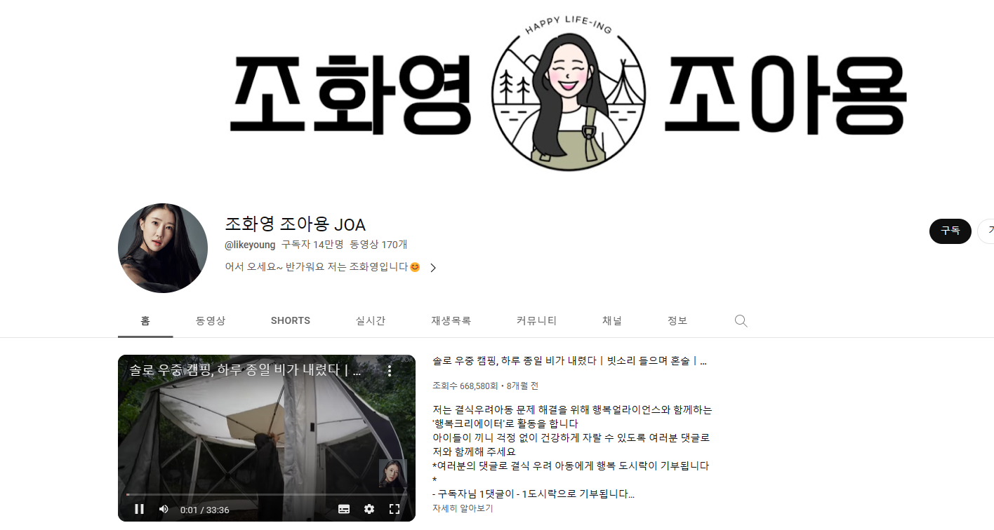 캠핑 유튜버계의 조상인만큼 이미 몇 년 째 캠핑 유튜브를 운영중이다.
