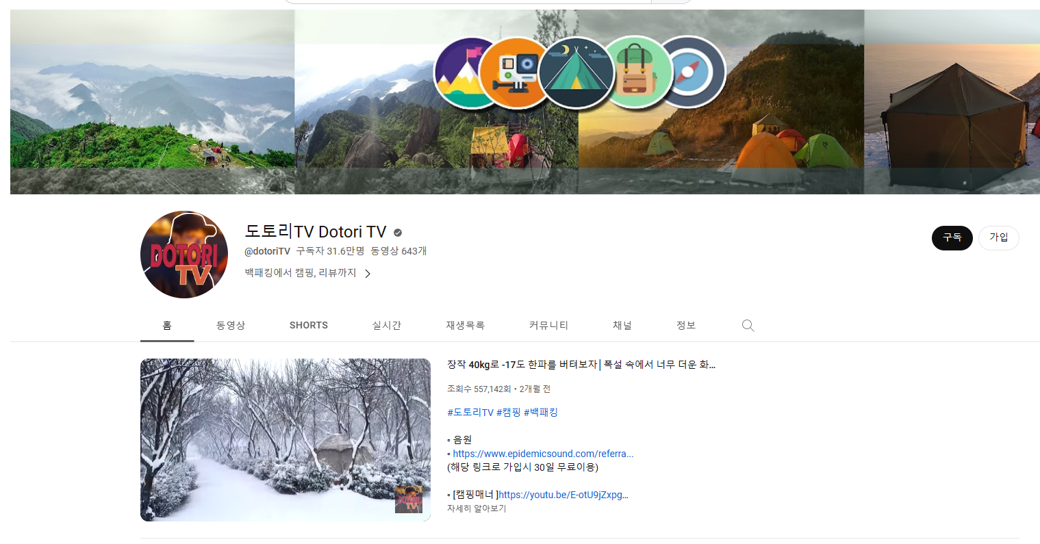 캠핑 유튜버계의 조상인만큼 이미 몇 년 째 캠핑 유튜브를 운영중이다.