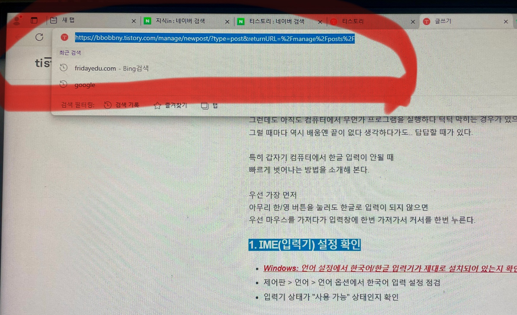 특히 갑자기 컴퓨터에서 한글 입력이 안될 때