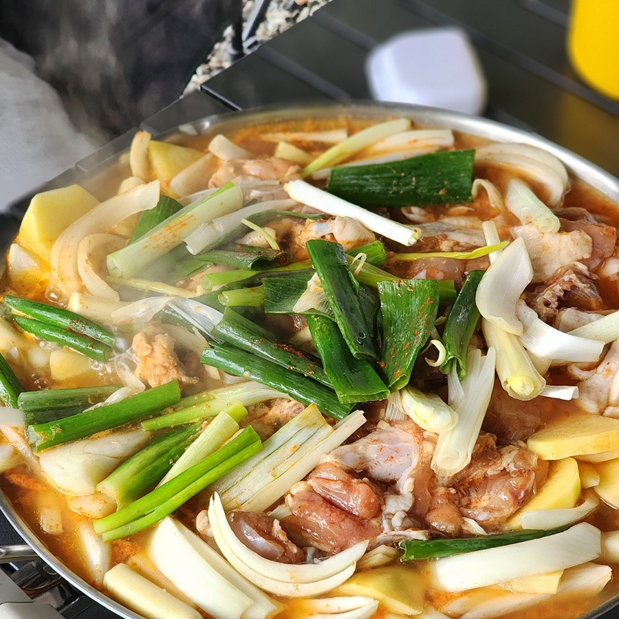 대파 잔뜩 썰어놓은 국물 닭갈비