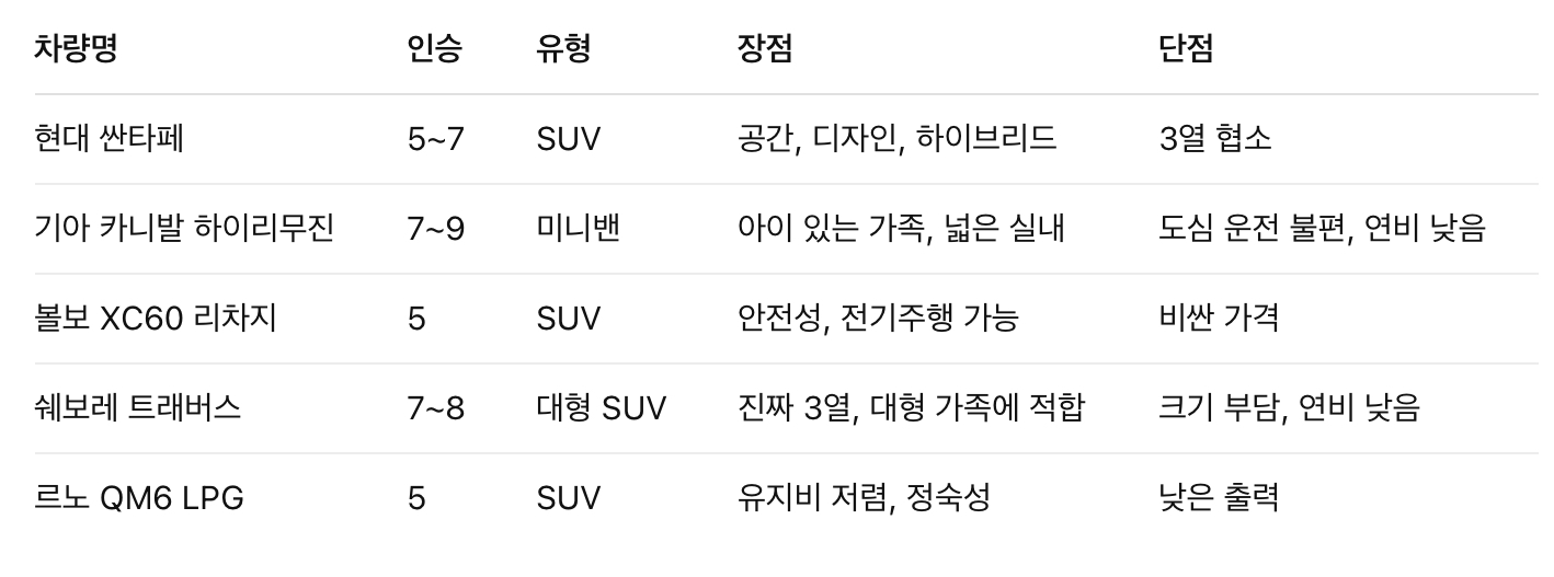 - 차체가 크고 무거움 → 도시에서는 불편할 수 있음