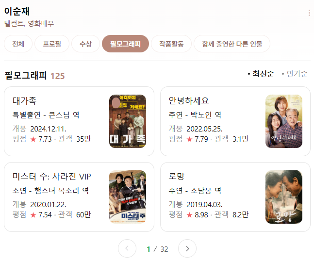 이순재 배우님의 필모그래피만 검색해 봐도 125개 넘는 작품에 출연하셨다.